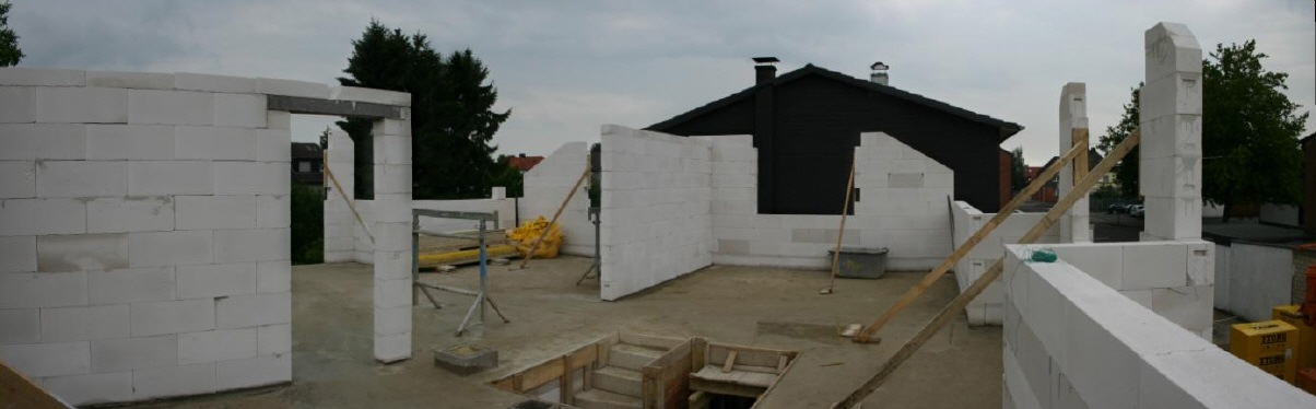 Nachdem wir jetzt eine Weile terminbedingt die Baustelle nicht besuchen konnten, gibt es viel Neues zu sehen: die Erdgeschoss-Decke ist gegossen worden (obwohl in der Baubeschreibung von Fertigelementteilen die Rede ist) und eine Treppe haben wir jetzt auch -- ebenfalls massiv gegossen.