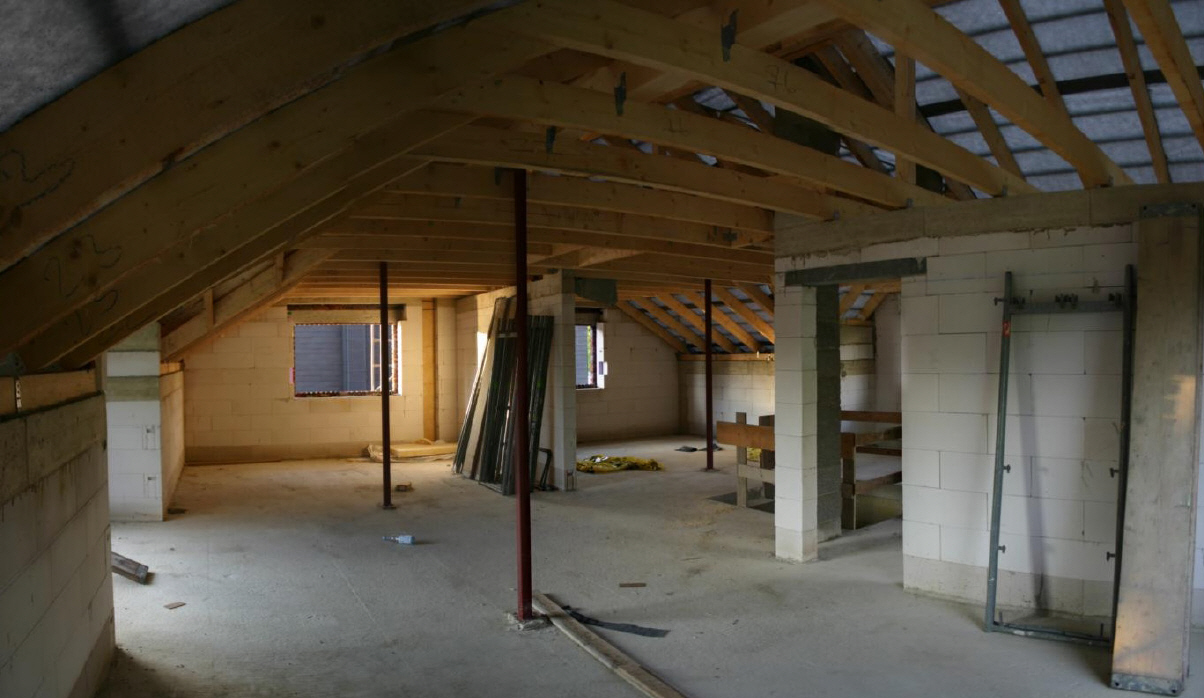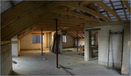 Heute wurde die Delta-Folie aufs Dach gespannt. Damit wäre der Bau erstmal trockengelegt -- das wird auch Zeit! Vielleicht haben wir Glück und morgen kommen bereits die Ziegel aufs Dach. Mit dem Trockenlegen ist aber auch der Weg frei für die Zwischenwände im OG und auch für die Installation der Fenster. Wir sind also gespannt, wie es nächste Woche weitergeht!