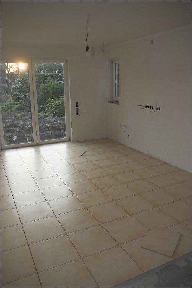 Nachdem der Bau nun einige Zeit beheizt wurde, hat seit sich seit zwei Arbeitstagen der Fliesenleger ans Werk gemacht. Mit der Arbeit und vor allem auch den ausgesuchten Fliesen sind wir sehr zufrieden. Einige Kleinigkeiten müssen allerdings doch korrigiert werden, da wir uns das ein oder andere doch anders vorgestellt haben. |